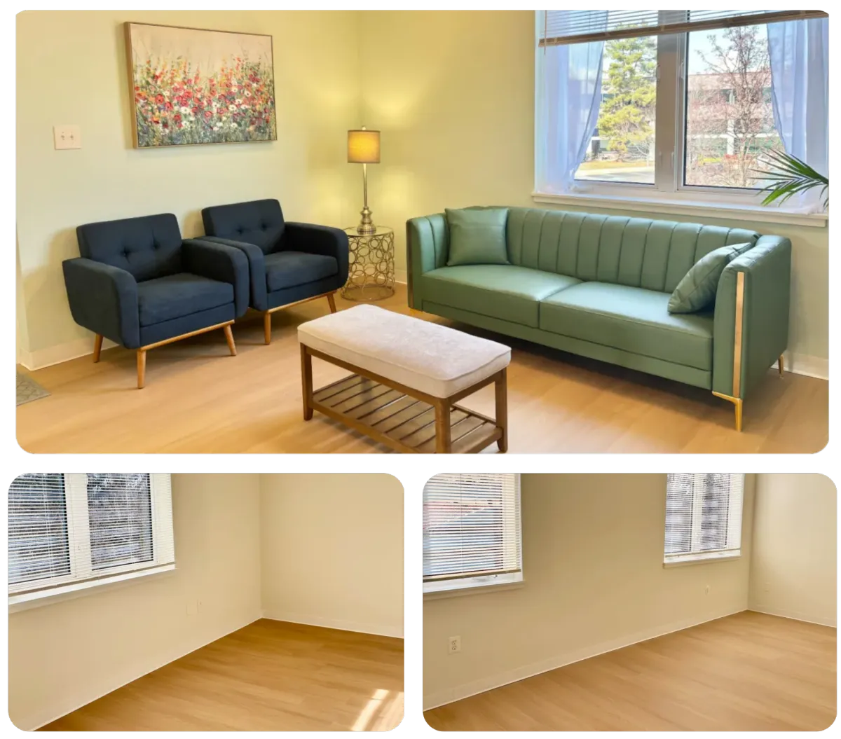 Our fully furnished therapy offices are designed with both clinician and client comfort in mind. Each space offers a calm, private environment that supports meaningful therapeutic work—free from distractions and designed to foster trust and connection.